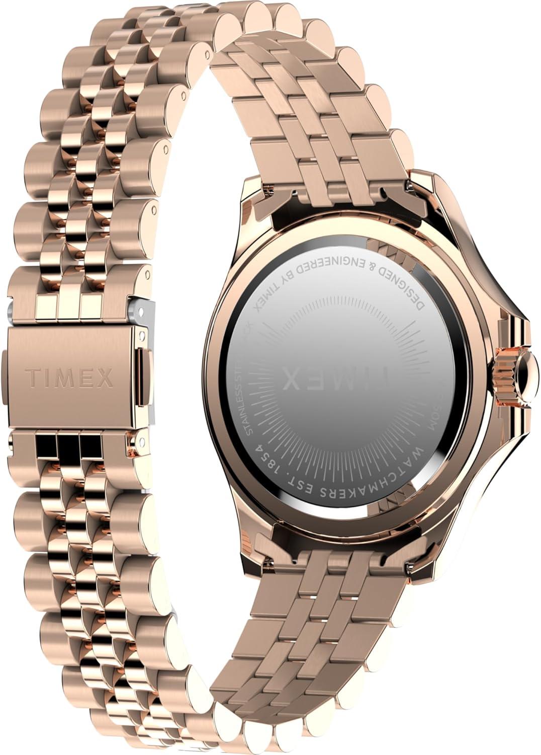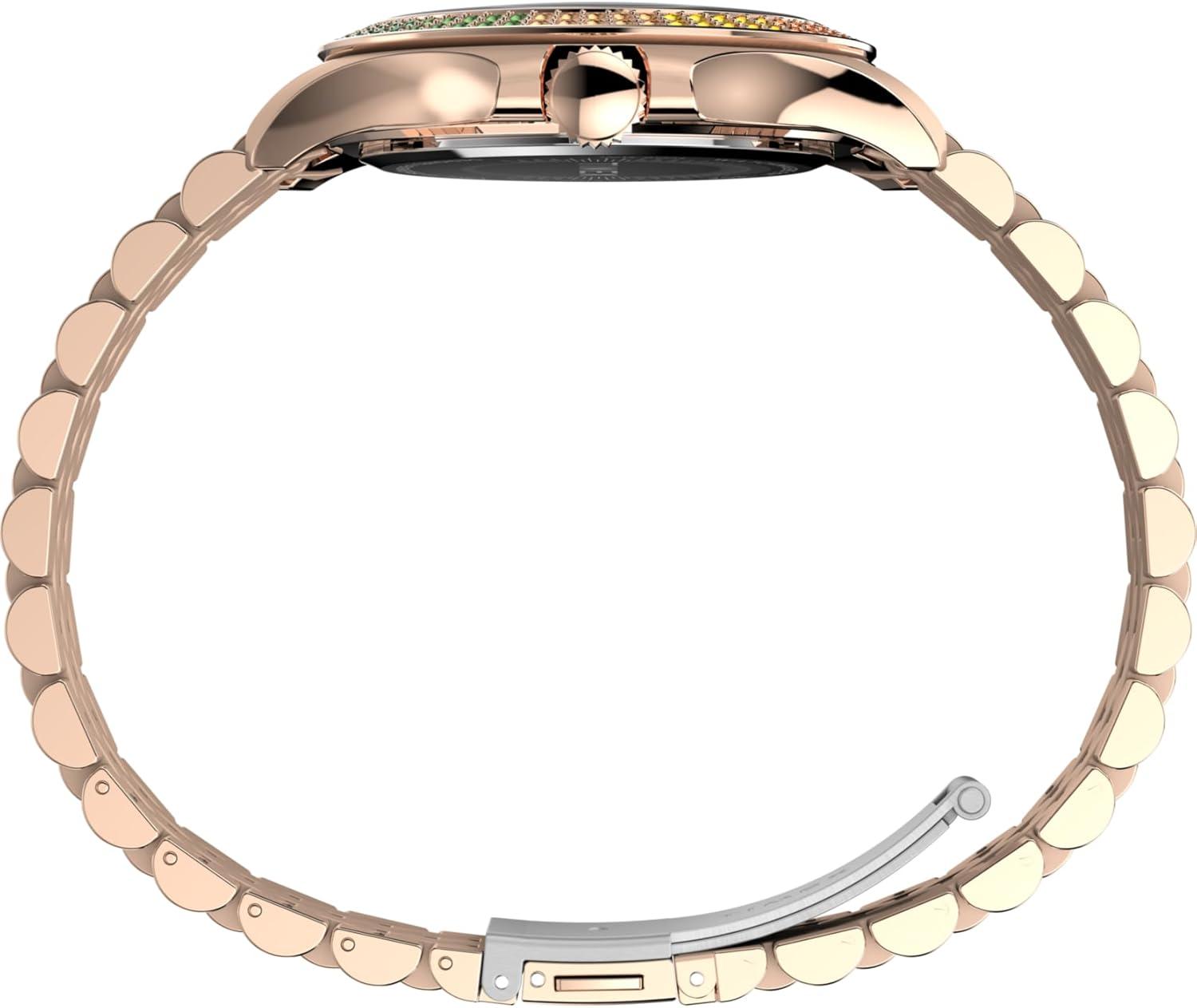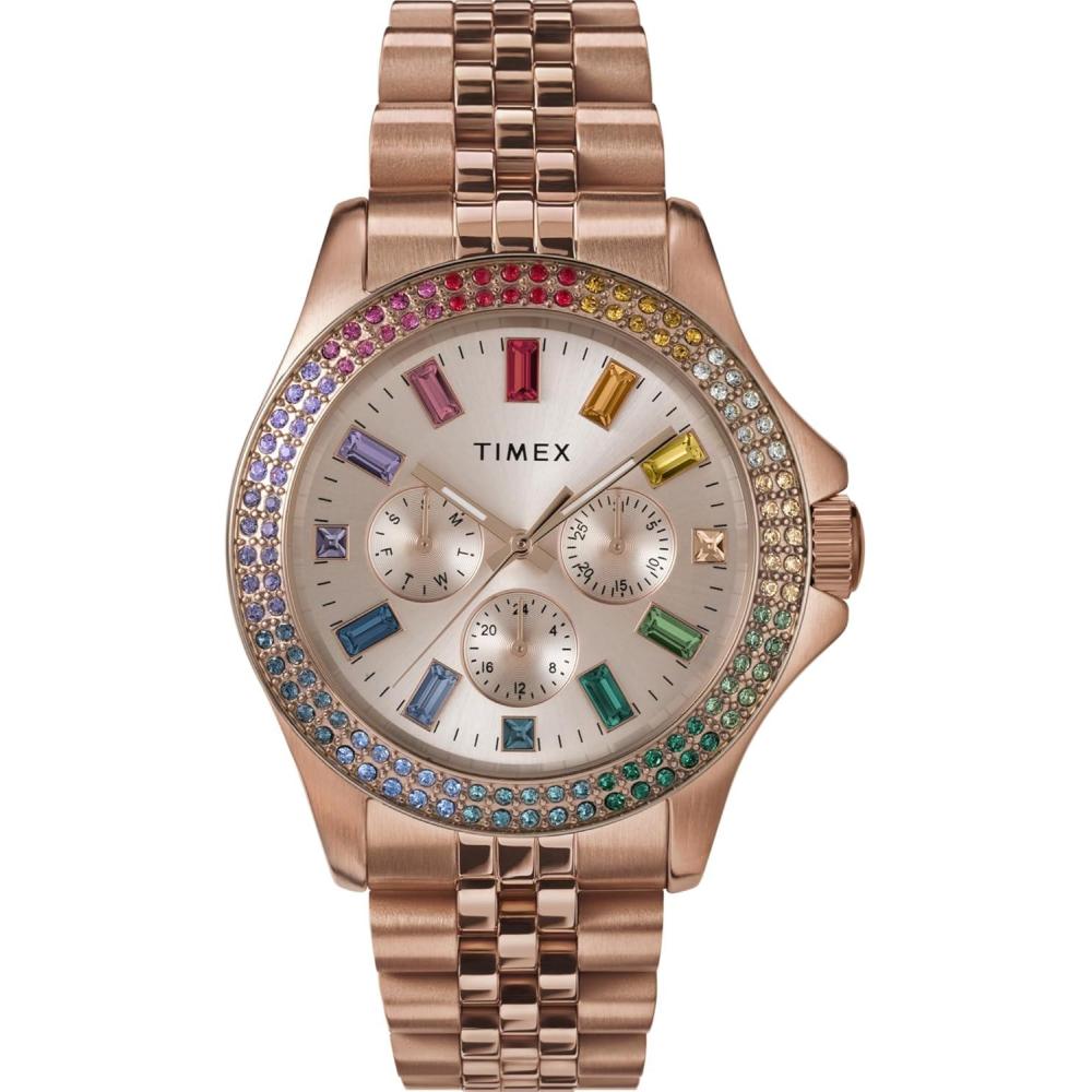Timex Kaia 40mm Women’s Analog Watch | Baguette Crystal Markers | Stylish Modern Design | 50M Water Resistance(Rose Gold-Tone/Rose Gold-Tone/Rose Gold-Tone/Rainbow)