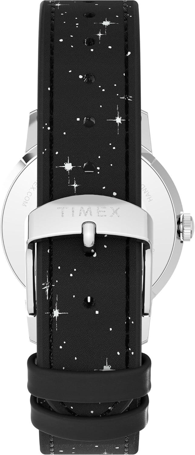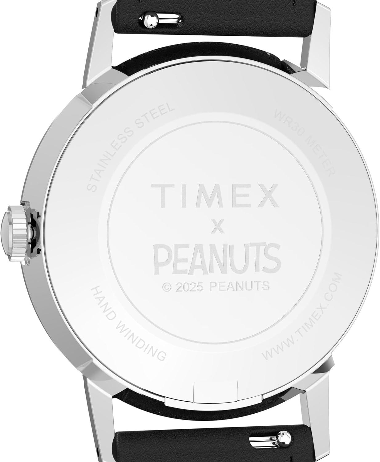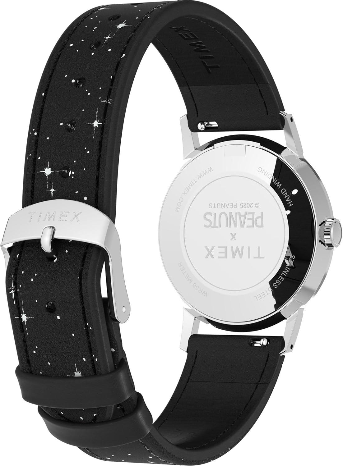 Inspired by mankind’s leap into the cosmos, the Timex x Peanuts Space Collection brings Snoopy and Charlie Brown to a whole new frontier. Thanks to its clever design, the sweep second hand design allows you to watch Snoopy float and glide around the graphic dial, capturing the magic of zero gravity right on your wrist. We’ve paired this fun update to our Marlin Hand-Wound with a smooth grain black vegan leather strap scattered with stars, luminant hands, a domed acrylic crystal, and a 34mm polished recycled stainless-steel case. Perfect for adding a bit of nostalgia and wonder to your everyday style, this adorable watch is a celebration of adventure, imagination, and the joy of dreaming big.