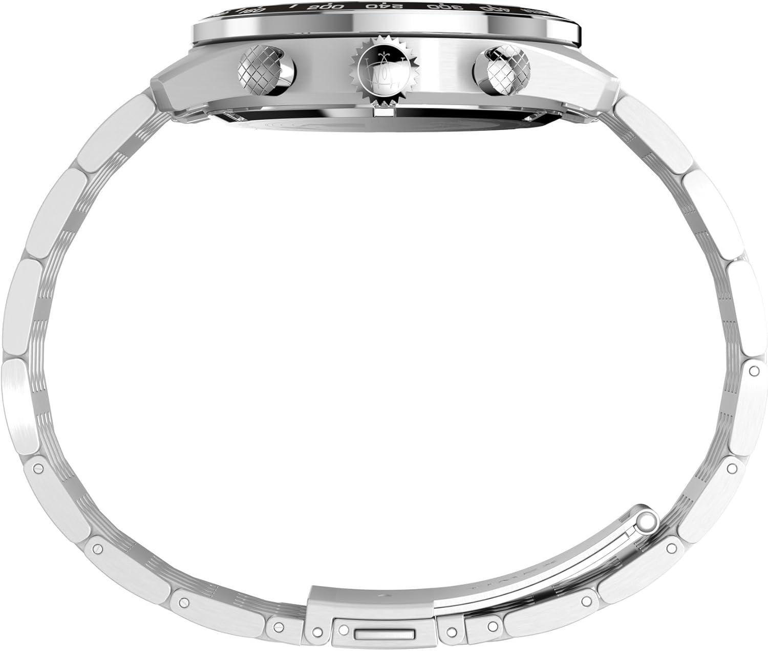 Like all Waterbury watches, this timepiece displays our attention to craftsmanship and detail with finely finished surfaces and careful applications of watchmaking ingenuity. In a nod to our original collection, The Waterbury Watch Company logo is featured on the black dial and green second hand, which bear the stylized W. It’s equipped with a 41mm stainless-steel case and coordinating stainless-steel bracelet, as well as a chronograph for tracking elapsed time and a tachymeter top ring which can be used to determine average speed. We’ve topped things off with a handy date window, luminant hands, and 100m of water resistance.