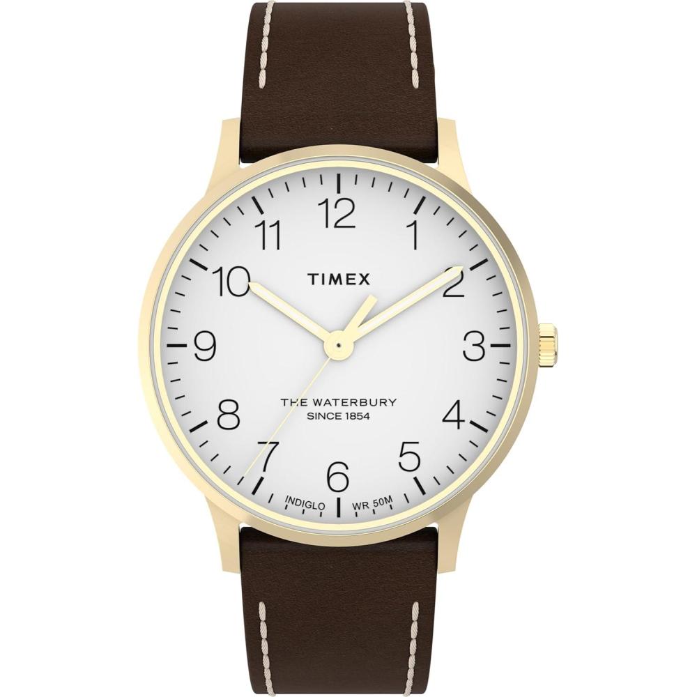We have looked to our past, and we’re paying homage to our original watch collection. Each watch displays our attention to craftsmanship and detail, with finely-finished surfaces and careful applications of watchmaking ingenuity. Featuring a stainless-steel case, classic white dial with Arabic numerals and a natural leather strap, our Waterbury Classic Day/Date unites all of these elements into something that’s right for your wrist today, and right for all the days to come.